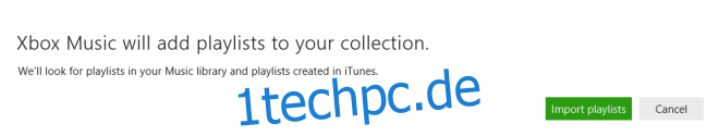 Ein Klick darauf öffnet ein Fenster, das Sie auffordert, Ihre Musikbibliothek nach Wiedergabelisten zu durchsuchen und diese zu importieren. Klicken Sie einfach auf „Wiedergabelisten importieren“.