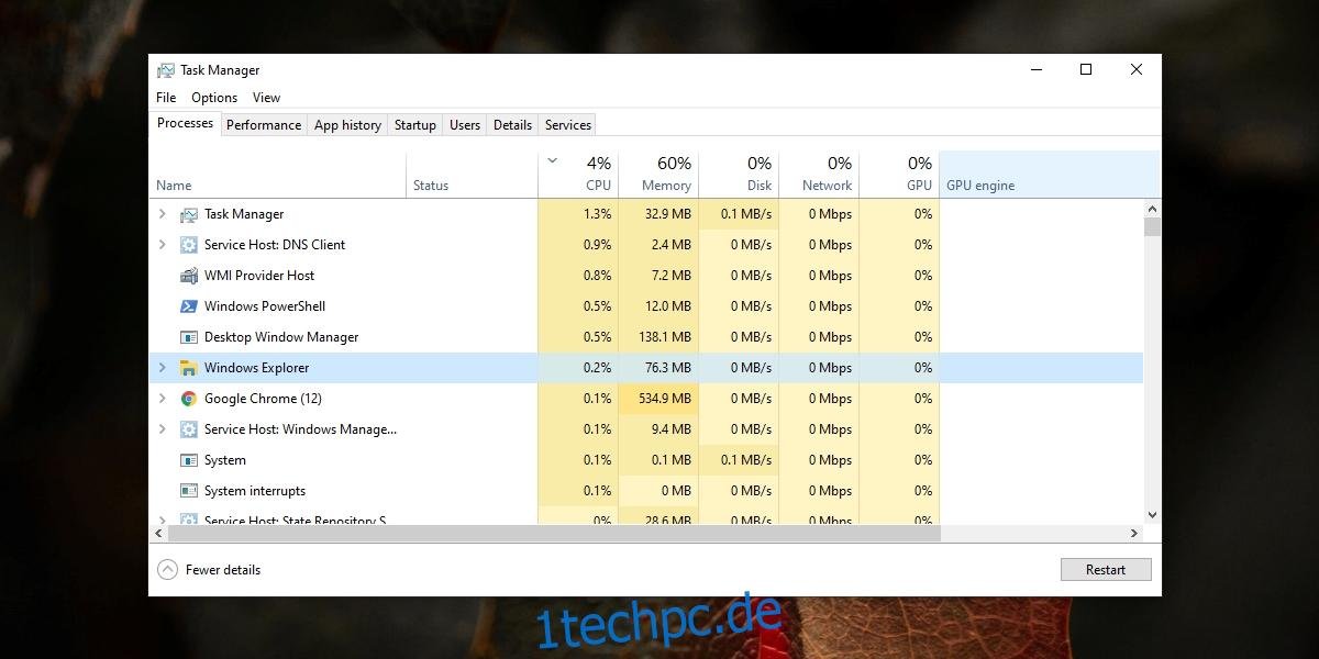 Ein Problem mit dem dwm.exe-Prozess lässt sich häufig durch einen einfachen Neustart von Explorer.exe beheben.