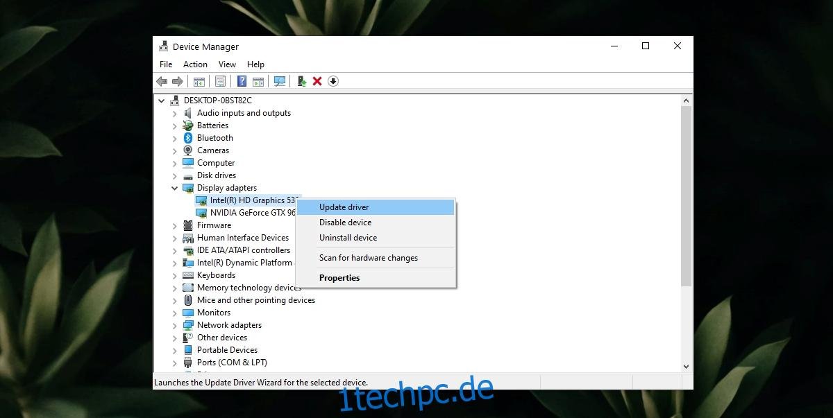 Klicken Sie mit der rechten Maustaste auf die integrierte Grafikkarte und wählen Sie „Treiber aktualisieren“.