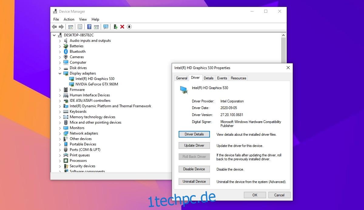 Falls Sie den Grafiktreiber erst kürzlich aktualisiert haben, versuchen Sie, ihn auf eine vorherige Version zurückzusetzen.