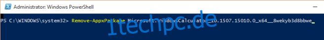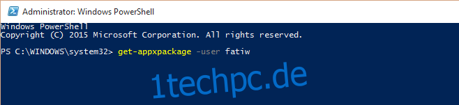 Um eine bestimmte App zu deinstallieren, benötigen Sie den genauen Paketnamen. Diesen finden Sie, indem Sie folgenden Befehl in PowerShell ausführen: