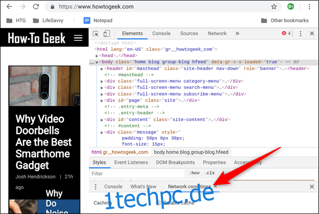 Im unteren Bereich der Entwicklertools finden Sie die Option „Netzwerkbedingungen“.