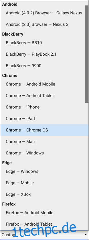 Chrome stellt eine Vielzahl von vordefinierten User-Agent-Vorlagen zur Auswahl bereit. Diese können Sie bequem über ein Dropdown-Menü auswählen.