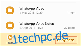 In der App Samsung Meine Dateien können Sie beispielsweise eine Datei oder einen Ordner auf dem USB-Stick auswählen und unten auf „Verschieben“ oder „Kopieren“ klicken.