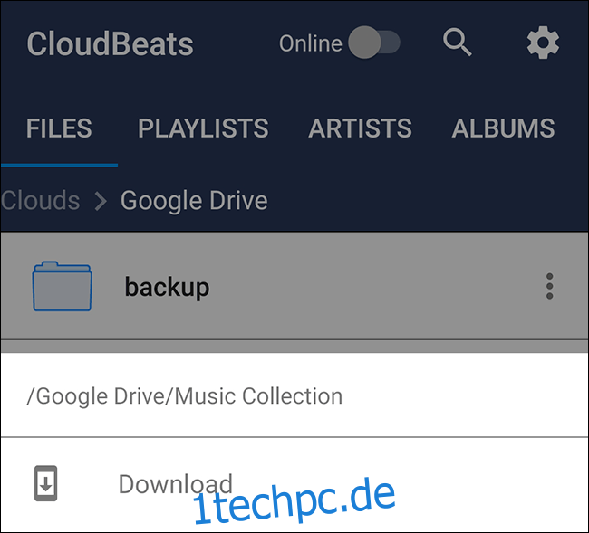 Wenn Sie eine Drittanbieter-Musik-App für Android verwenden, können Sie Ihre Dateien direkt von Cloud-Speicheranbietern auf Ihr Gerät herunterladen, einschließlich Google Drive und Dropbox. Alternativ können Sie auch CloudPlayer verwenden.