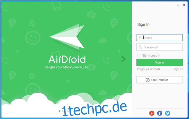 Wenn Sie kein USB-Kabel zur Hand haben, können Sie AirDroid verwenden, um Dateien zwischen Ihrem PC und Ihrem Android-Gerät zu übertragen.