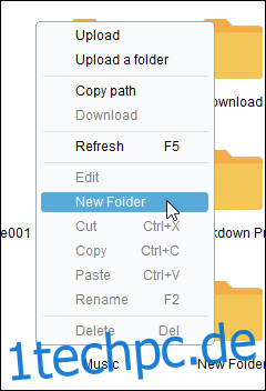 Klicken Sie entweder auf „SD-Karte“ oder „Externe SD“. „SD-Karte“ entspricht hier dem internen Speicher, während „Externe SD“ Ihre externe SD-Karte bezeichnet. Klicken Sie mit der rechten Maustaste in den Ordnerbereich und erstellen Sie einen neuen Ordner, indem Sie „Neuer Ordner“ auswählen.
