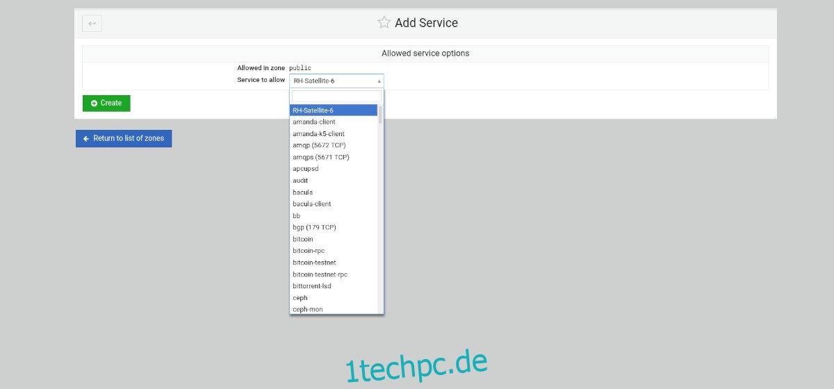 Schritt 3: Klicken Sie auf die grüne Schaltfläche „Erstellen“, um den Dienst zu den FirewallD-Regeln hinzuzufügen.