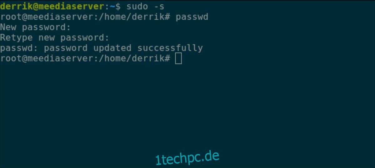 Nach dem Erhalt der Root-Rechte ist es an der Zeit, das Passwort zu ändern. Verwenden Sie den Befehl „passwd“, um Ubuntu mitzuteilen, dass Sie das Root-Passwort ändern möchten. Wählen Sie ein starkes und leicht zu merkendes Passwort.